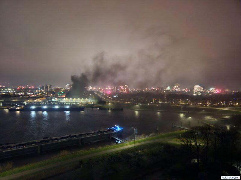 Groningen – Achter bij het Damsterdiep in Groningen heeft er in de nacht met oud