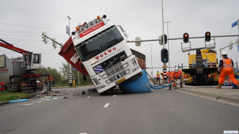 Groningen – Op de kruising Boumaboulevard/ Europaweg is vrijdagmorgen rond 10:15 uur een vrachtwagen uit