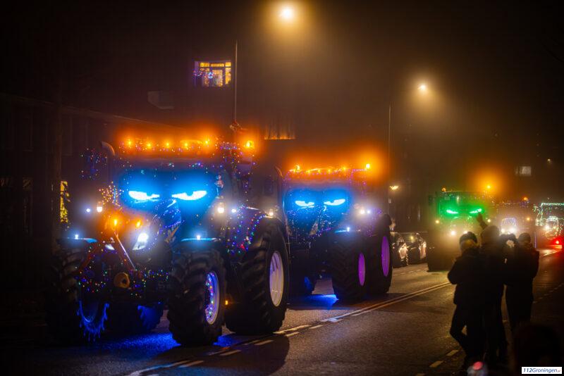 Westerkwartier / Groningen – Versierde en luid toeterende trekkers hebben zondagavond voor een sfeervol schouwspel
