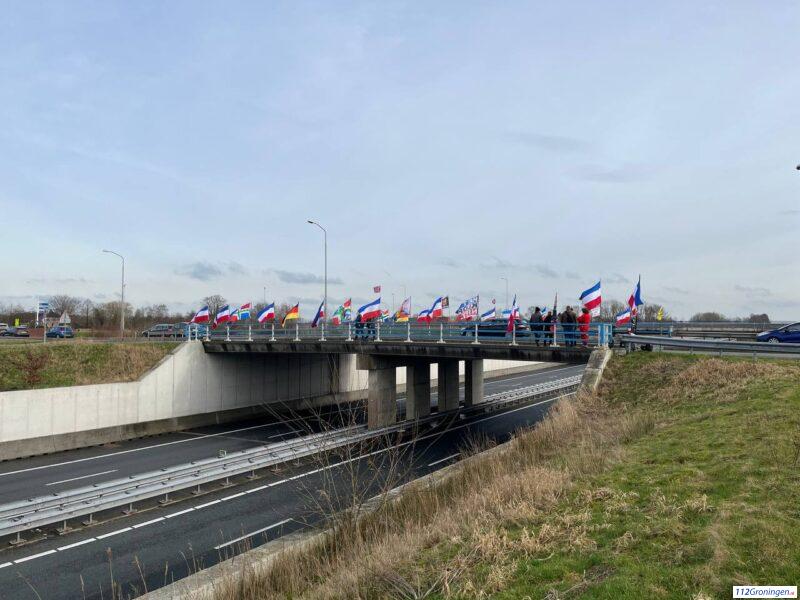 Winschoten – Op het viaduct boven de A7 bij Winschoten vindt momenteel een protest plaats,