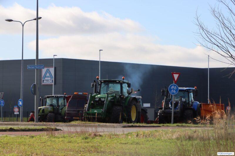 Hoogkerk – Zaterdagmiddag staan er een aantal tractoren voor het Distributiecentrum van de Aldi aan