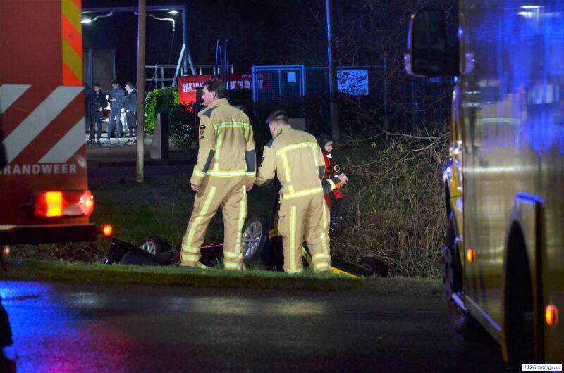 Grijpskerk: Automobilist(21) belandt op de kop in sloot, 1 ernstig gewonde (Video)