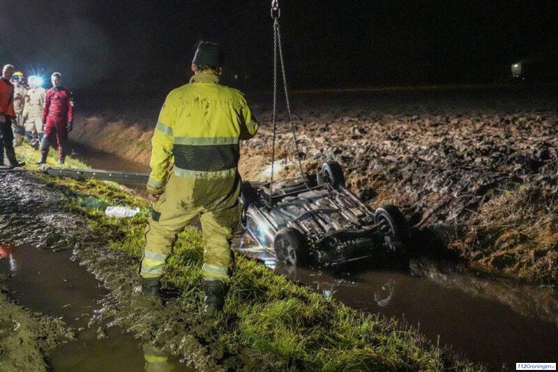 Voertuig op de kop in de sloot bij Ter Apel: Man(77) overleden (Video)
