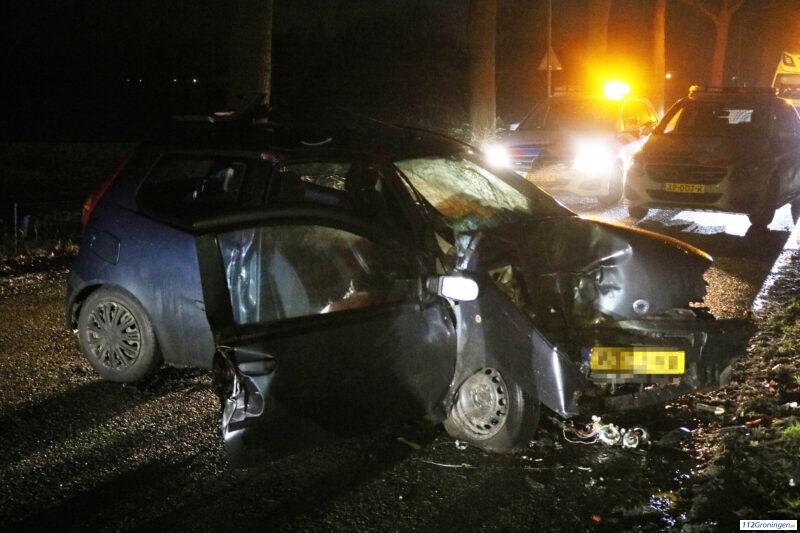 Auto contra boom Noorderringweg Marum, 1 ernstig gewonde