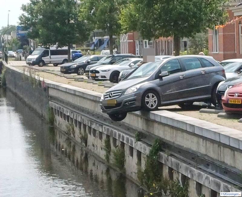 Auto `hangt over randje Boterdiep` bij Uithuizen
