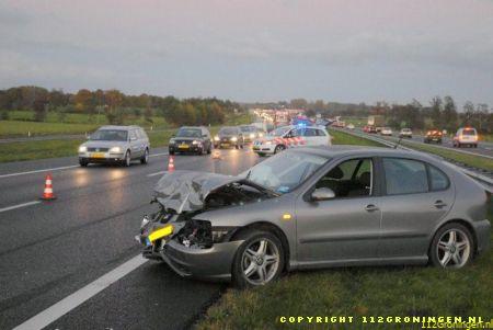 Auto in sloot naast A7 te Scharmer + Ongeval A7 te Leek