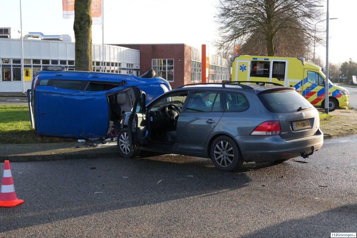 Winschoten – Op de A.J. Romijnweg in Winschoten zijn zaterdag twee automobilisten met elkaar in botsing gekomen. Door de aanrijding belandde één van de auto’s op de zijkant. Dat meldt