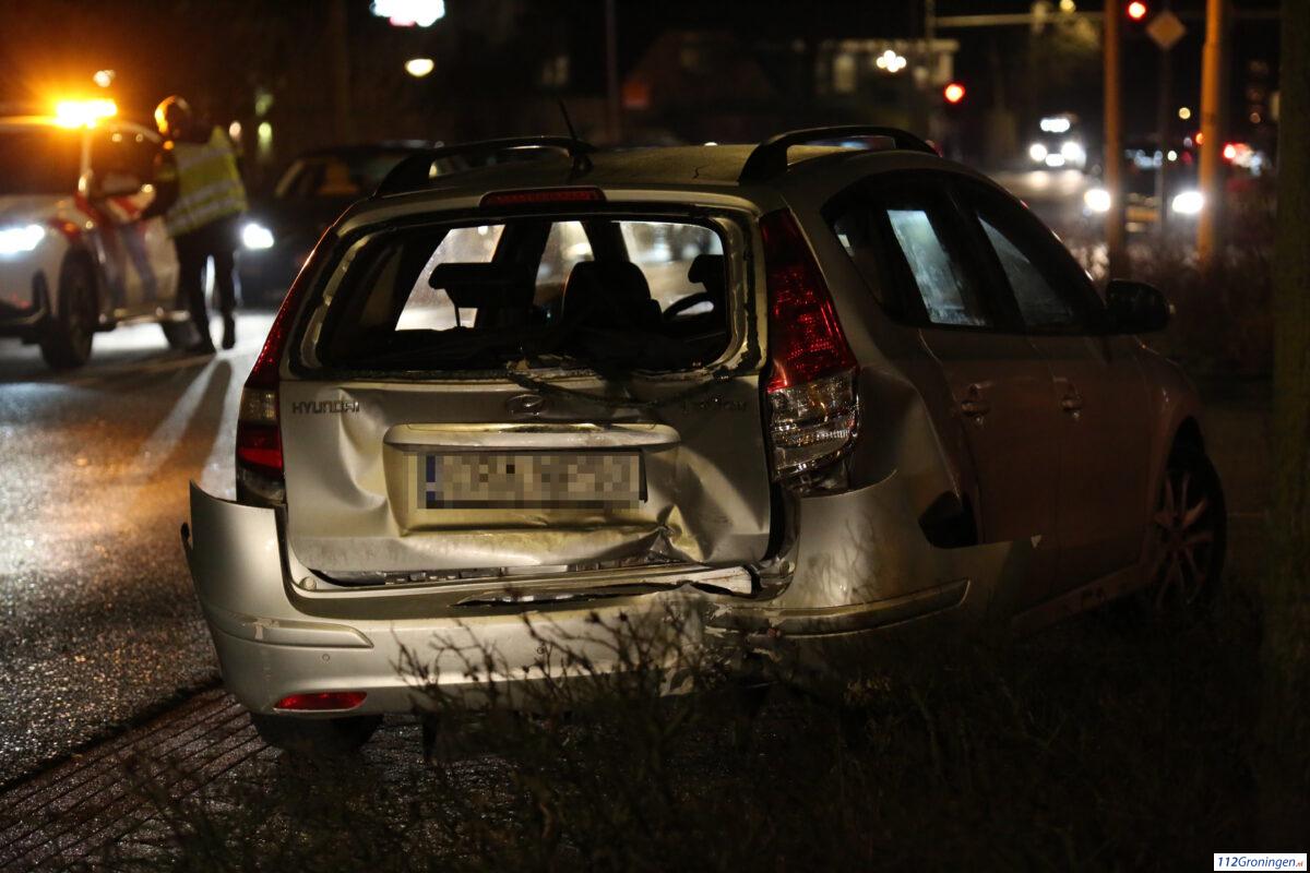 Auto op zijkant na aanrijding op A.J. Romijnweg in Winschoten