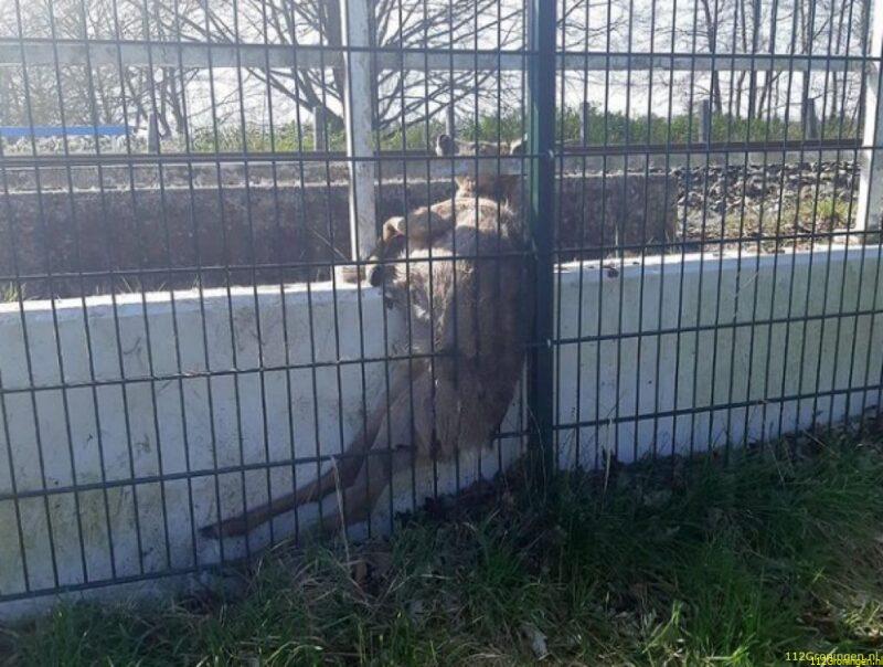 Ree vast in hek bij station Hoogezand