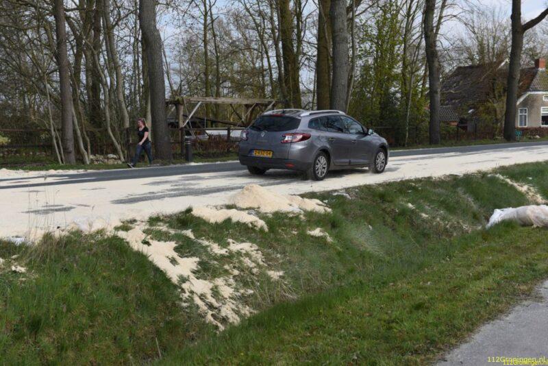 Deel N372 bezaaid met zaagsel door verloren lading van vrachtwagen