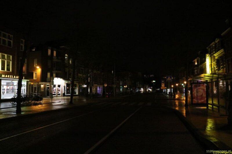 Op het Gedempte Zuiderdiep in de binnenstad van Groningen is woensdagavond het licht tijdelijk uitgevallen.