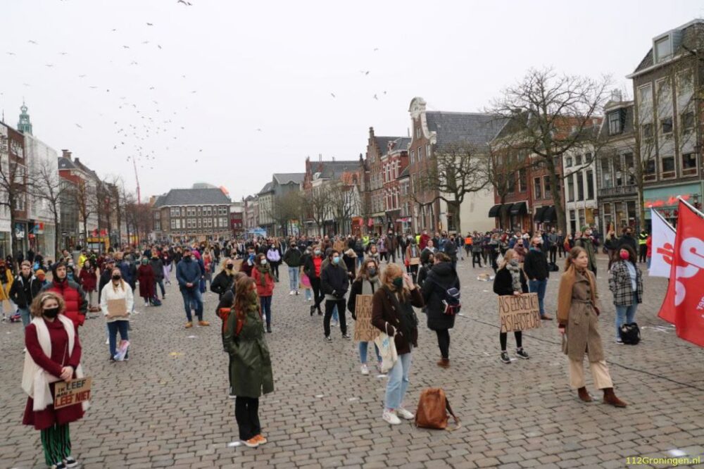 Studenten demonstreren op Vismarkt voor versoepeling coronaregels (Video)