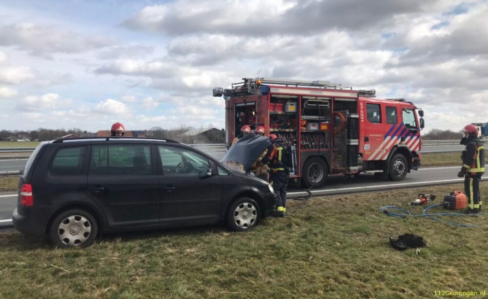 Autobrand op de N33 nabij Meeden, brand beperkt door inzet brandblussers