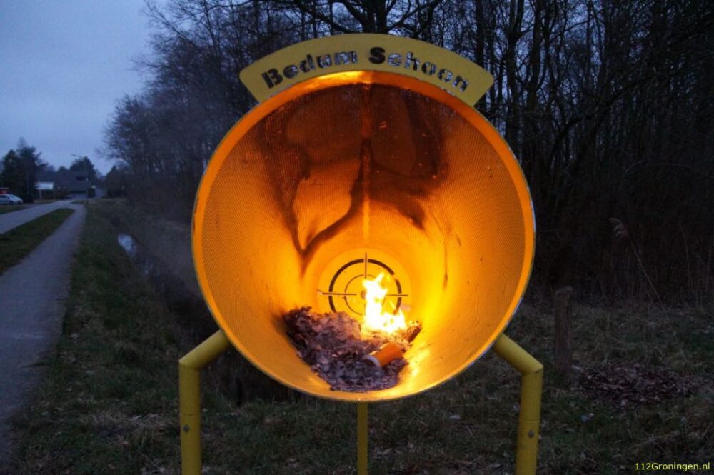 Kleine brand in blikvanger snel geblust door brandweer Bedum