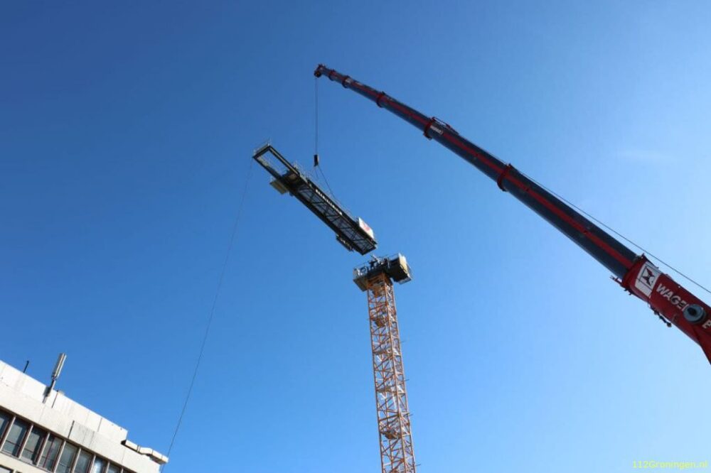 Aannemer Plegt-Vos is maandagmiddag begonnen met de opbouw van een grote bouwkraan aan de Rode