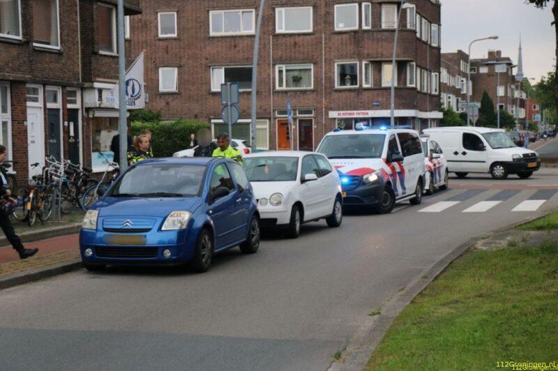 Op het Borneoplein in de stad Groningen heeft maandagavond een aanrijding plaatsgevonden tussen twee personenauto's.