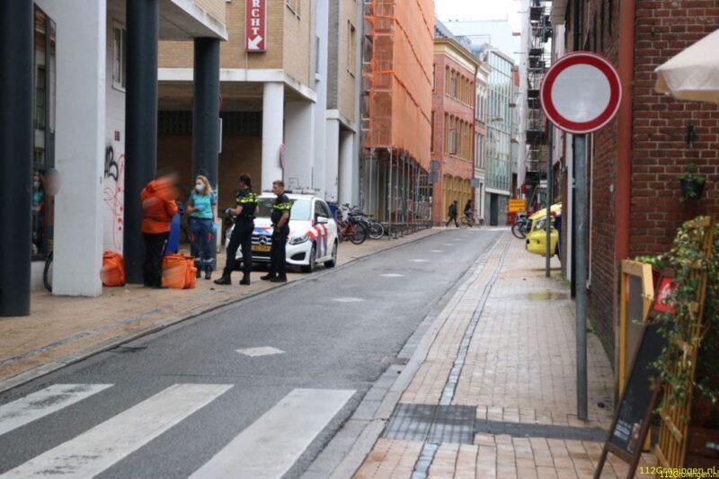 Op de Kleine Gelkingestraat is zondagavond een maaltijdbezorger met zijn fiets onderuit gegaan nadat hij