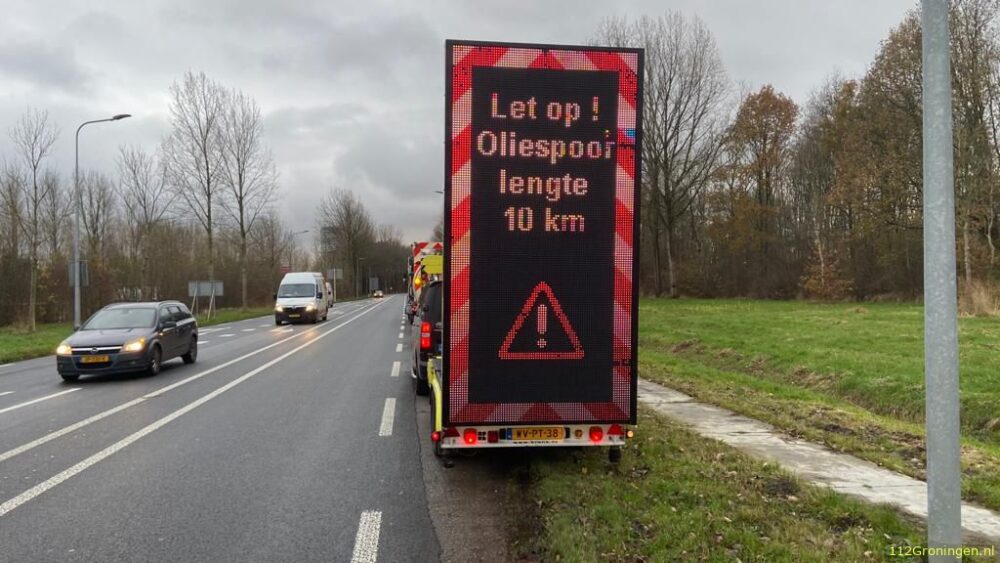 Op het traject Groningen naar Winsum t.h.v. het bedrijventerrein Witte lam lag dinsdagmiddag een oliespoor.