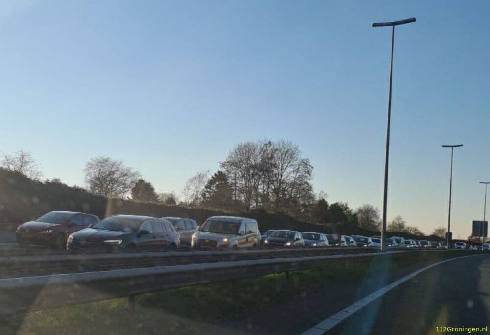 Werkzaamheden bij Julianaplein in Groningen zorgen voor lange files bij de A7 afrit Groningen-West. In