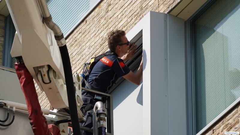 Groningen – Bij woongebouw de Frontier aan de Verlengde Lodewijkstraat is maandagmiddag een stuk aluminium