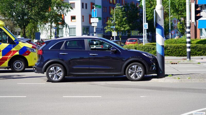 Groningen- Op de kruising Paterswoldseweg/ Overwinningsplein heeft een eenzijdige aanrijding plaatsgevonden. Hierbij is een auto