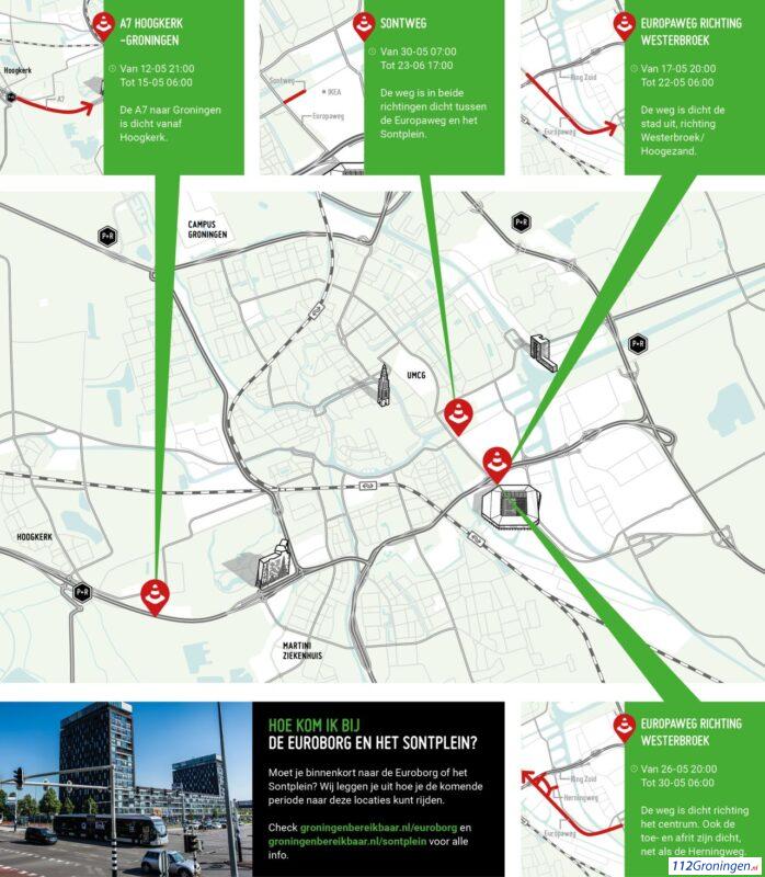 Groningen – De Europaweg in Groningen zal vanaf volgende week woensdagavond gedurende vier dagen afgesloten