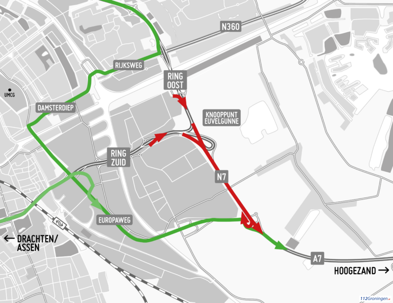 N7 tussen Euvelgunne en Westerbroek weekend dicht van 21 april 22.00 uur tot 24 april 06.00 uur