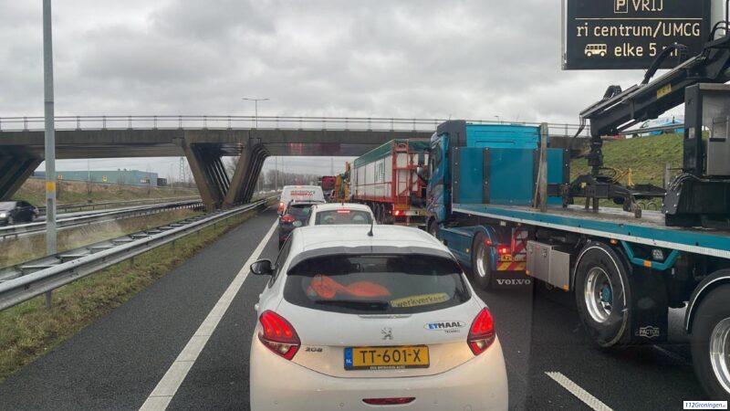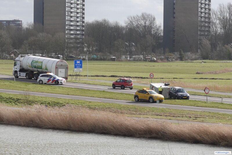 Groningen – Op de Friesestraatweg N355 ter hoogte van de wijk Reitdiep is een aanhanger