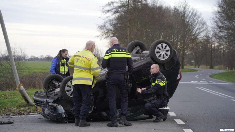 Auto ondersteboven op Fries-Groningse grens (Video)