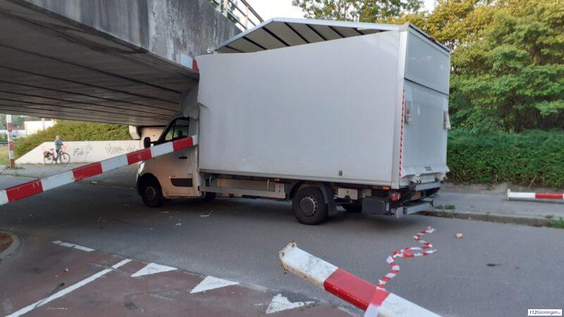 Groningen – Voor de zoveelste keer heeft de bestuurder van een bestelbus zijn voertuig muurvast