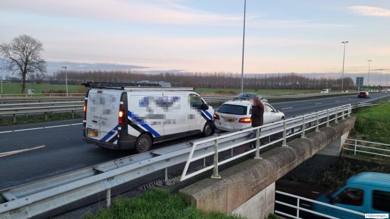 Groningen – Op de N7 tussen de knooppunten Euvelgunne en Westerbroek heeft maandagmiddag een kop-staartbotsing