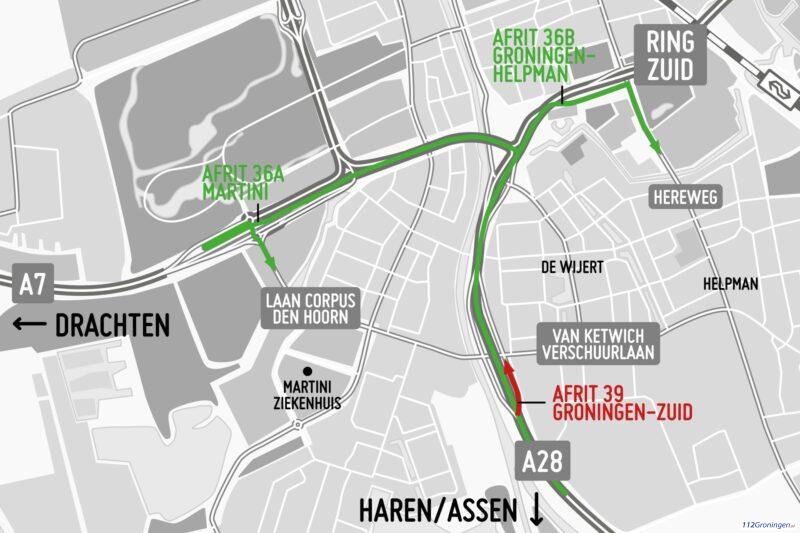 A28-afrit naar Groningen-Zuid is komend weekend deels dicht