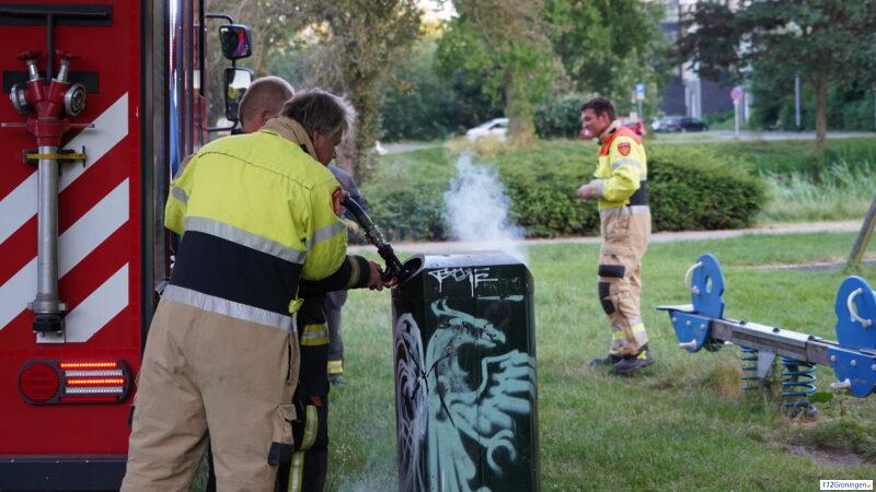 Prullenbak in brand Van Lenneplaan Groningen & Bal op dak