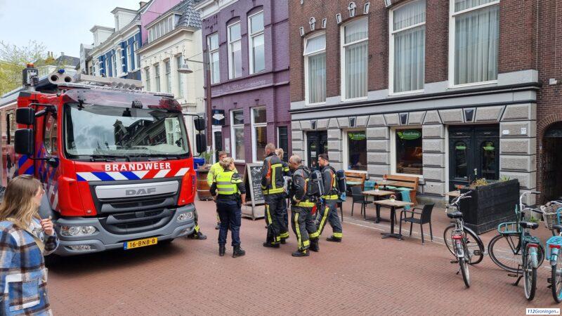 Groningen- Bij de Albert Heijn aan de Westerkade doet de brandweer onderzoek in de Albert