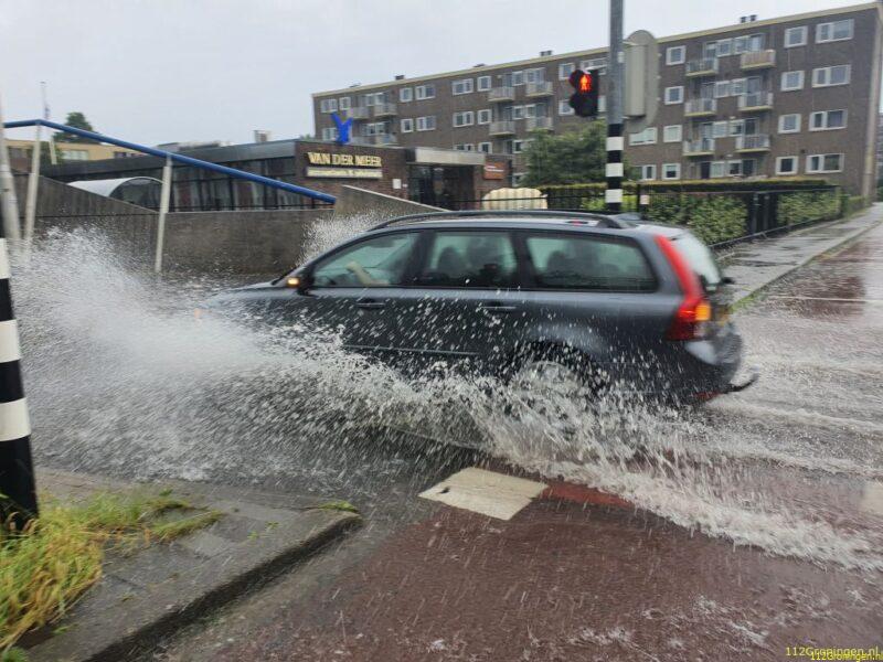 Regenbuien die zondagavond over Groningen trokken hebben voor overlast gezorgd op de Van Ketwich Verschuurlaan,