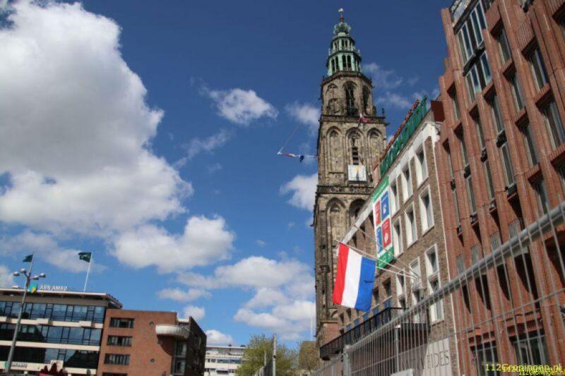 Vrolijk gevlag vanaf Martinitoren op Nederlandse Veteranendag