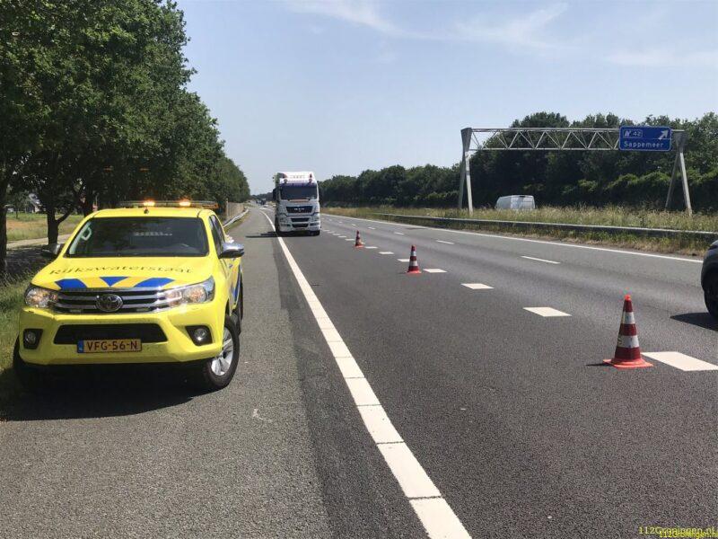 Wegens een gestrande telekraan had Rijkswaterstaat donderdagmiddag een verkorte invoeger bij toerit A7 Sappemeer richting