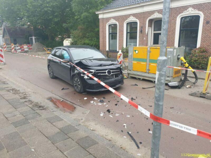Op het Kwinkeplein in Groningen is vrijdagmiddag een auto achteruit tegen een auto, een scooter