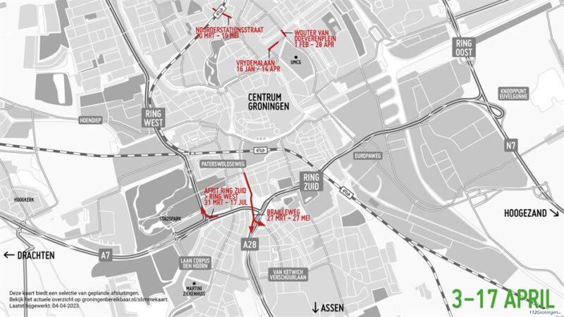 Groningen – De vele werkzaamheden in de stad Groningen zorgen ervoor dat veel wegen tijdelijk