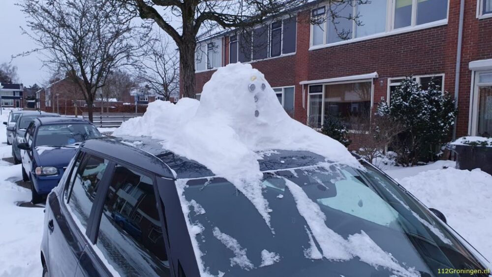 Aan de G. Meierstraat in het Hoornsemeer in de stad hing een groot stuk sneeuw