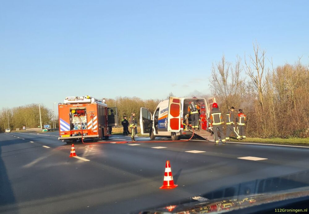 Auto botst tegen voertuig van Rijkswaterstaat op N33 bij Veendam